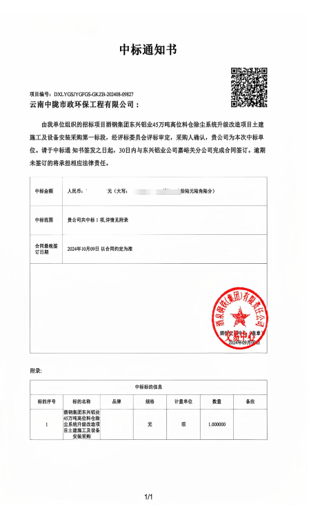 金秋送爽,丹桂飄香。在這個充滿收獲與希望的季節(jié)里,我們迎來了振奮人心的好消息——云南加拿大28咪牌市政環(huán)保工程有限公司成功中標(biāo)酒鋼集團東興鋁業(yè)45萬噸高位料倉除塵系統(tǒng)升級改造項目土建施工及設(shè)備安裝采購第一標(biāo)段!