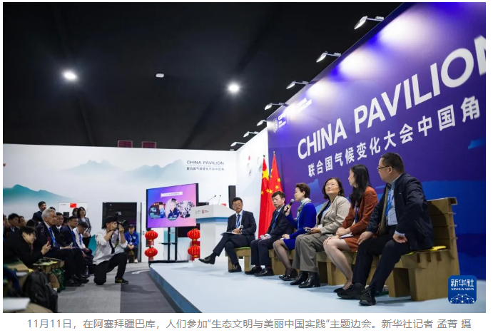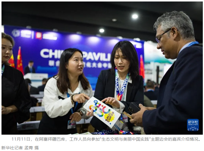 《聯(lián)合國氣候變化框架公約》第二十九次締約方大會(COP29)中國角11日開幕。“生態(tài)文明與美麗中國實踐”主題邊會當(dāng)天上午在阿塞拜疆巴庫奧林匹克體育場藍(lán)區(qū)舉行,正式拉開了中國角活動的序幕。