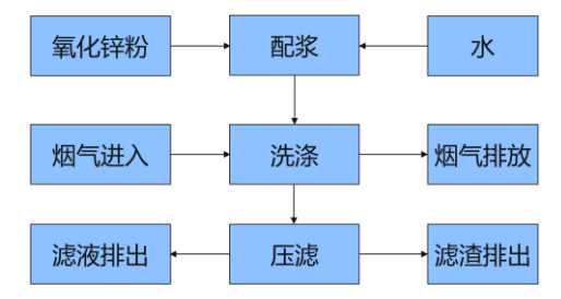氧化鋅脫硫技術是將含ZnO的粉料加水配制成懸乳液,在吸收設備中與煙氣中的SO2反應,將煙氣中的SO2主要以亞硫酸鋅(還有亞硫酸氫鋅、硫酸鋅)的形式予以脫除。吸收后的副產物亞硫酸鋅經空氣氧化為硫酸鋅溶液,加入氧化鋅粉、硫酸在特定的PH值和溫度下充分反應,再經除雜、結晶后生成七水硫酸鋅產品,從而實現污染物的回收,資源化綜合利用。