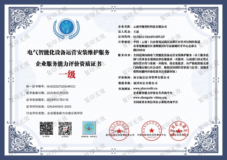 近日,加拿大28咪牌旗下云南加拿大28咪牌市政環(huán)保工程有限公司、云南加拿大28咪牌智控科技有限公司,分別榮獲市政、綠化、環(huán)境治理服務(wù)及電氣智能化設(shè)備運營安裝維護服務(wù)企業(yè)服務(wù)能力評價資質(zhì)一級認(rèn)證,標(biāo)志著加拿大28咪牌在相關(guān)業(yè)務(wù)領(lǐng)域的專業(yè)實力與服務(wù)水平再獲權(quán)威肯定。