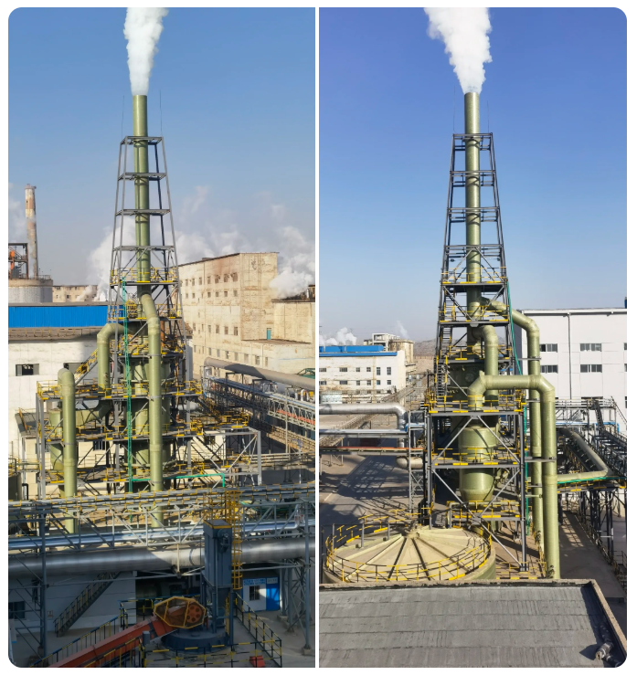 目前在火法冶金中常規的除塵方法分為干法和濕法,考慮到干燥窯煙氣高溫、高濕的特性及除塵穩定性、設備后期的運行成本等因素,本項目采用濕法進行除塵,除塵裝置由煙道洗滌系統-高效噴淋洗滌塔-旋風分離器等組成。